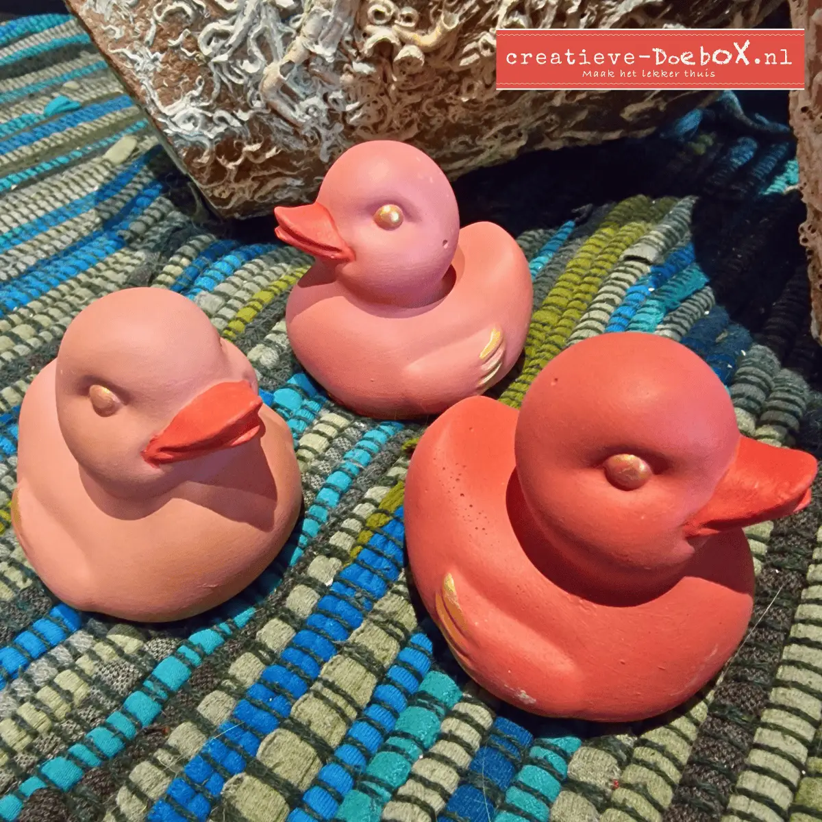 Deze set van drie schattige badeendjes van keramisch gips zijn zo cute. Ik heb een 15-tal voorbeelden gemaakt te inspiratie, bekijk de foto’s en je zal een nog grote smile op je gezicht krijgen. Ik was niet te stoppen.