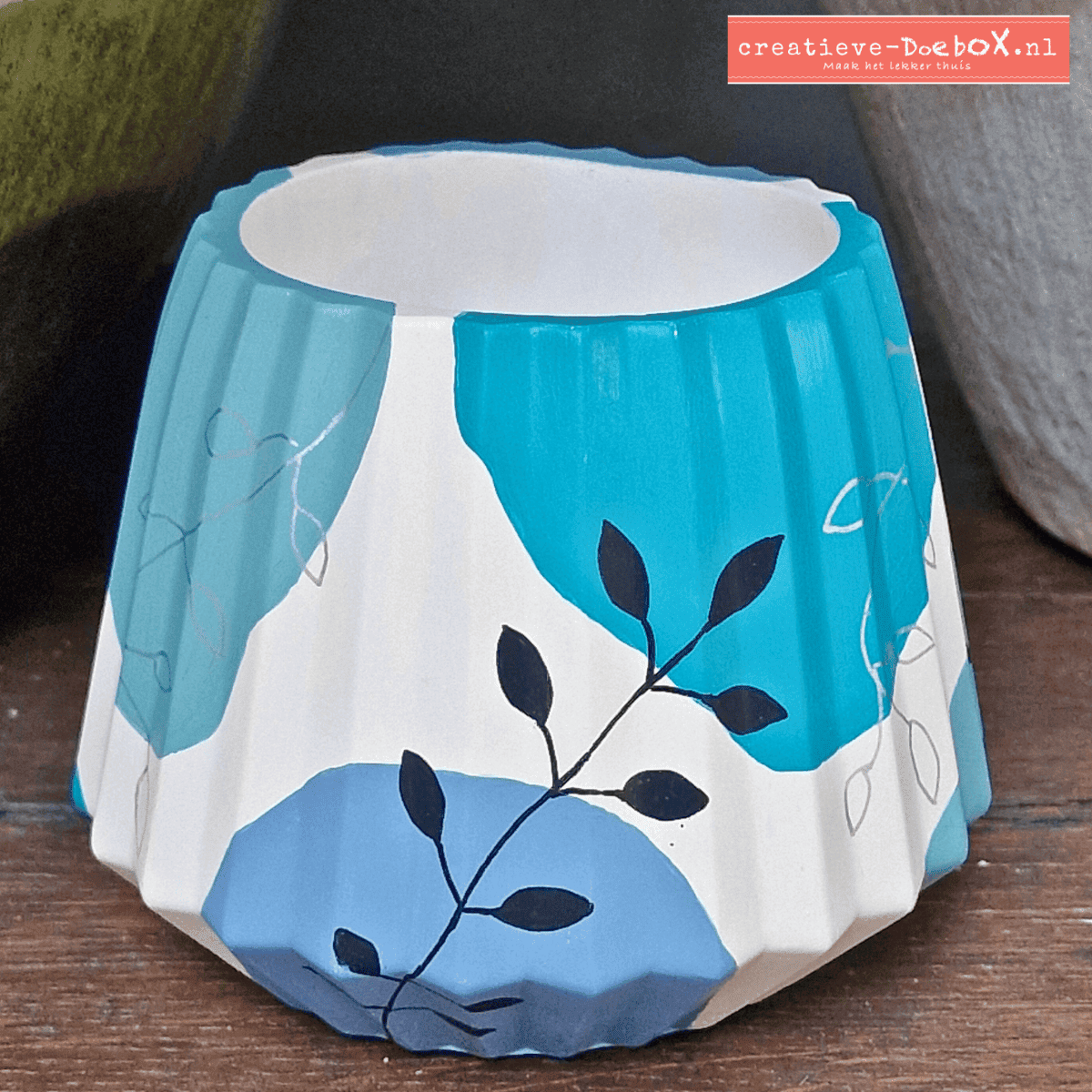 Dit strakke model met een subtiele ribbelrand loopt taps toe en is een perfecte basis om helemaal naar jouw smaak te beschilderen. In deze Doebox zit alles om direct aan de slag te gaan: een bloempot en één serie acrylverf in de kleurcombinatie die jij kiest. Wil je een extra bloempot toevoegen? Geen probleem! Ik zorg er dan voor dat er voldoende verf in je creatieve thuispakket zit om twee potten te beschilderen.