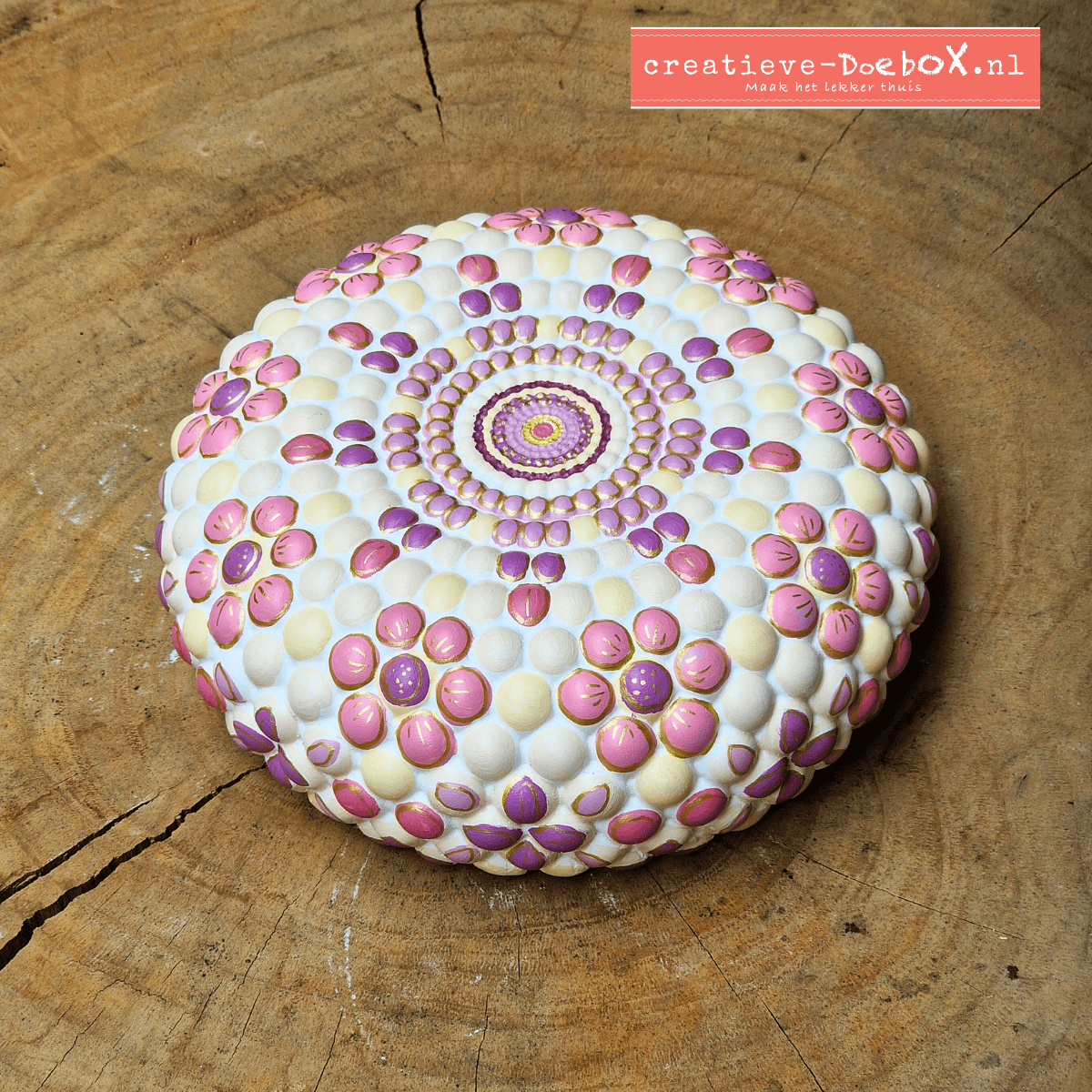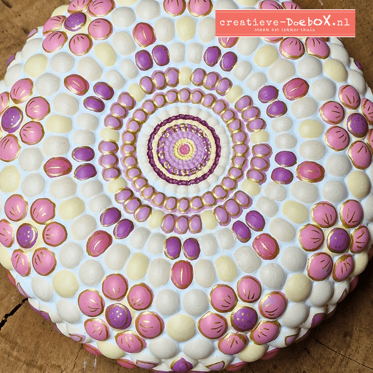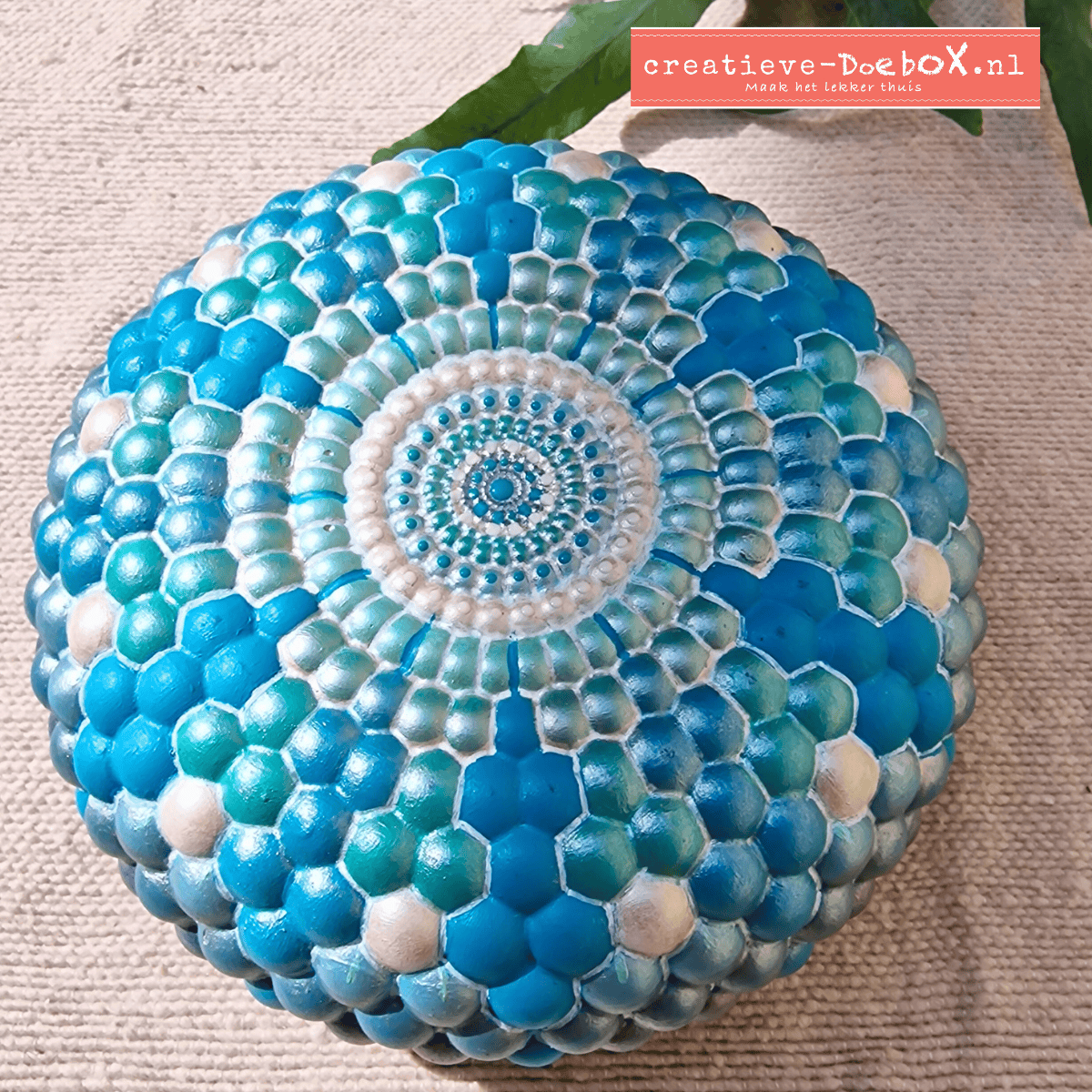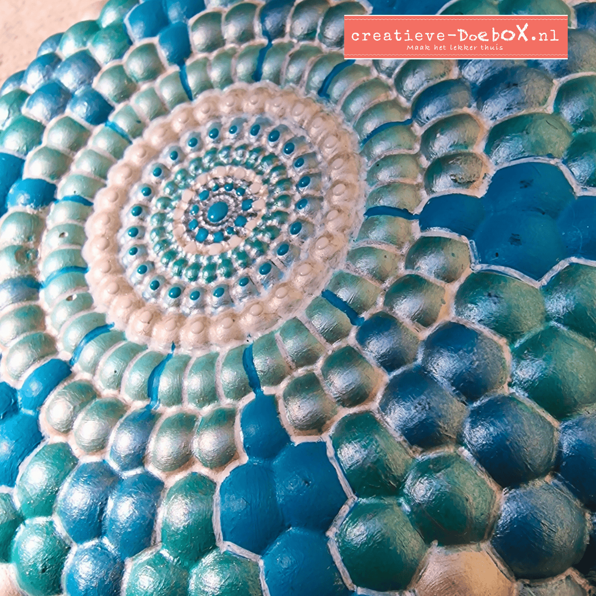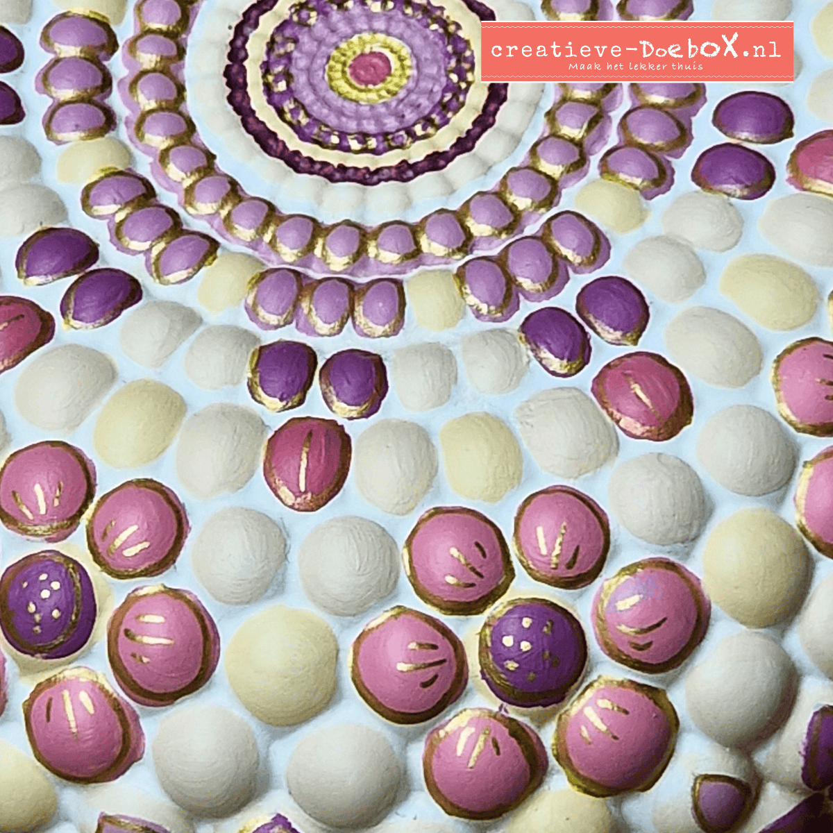 Ik heb twee kleurvoorbeelden voor je gemaakt ter inspiratie, maar je kunt natuurlijk eindeloos variëren! Dit is echt zo’n project waar je heerlijk in opgaat. Zoek een kleurencombinatie acrylverf uit bij het bestellen. Mis je een nog kleurtje? KLIK en hier vind je nog heel veel losse kleurtjes om te bestellen.