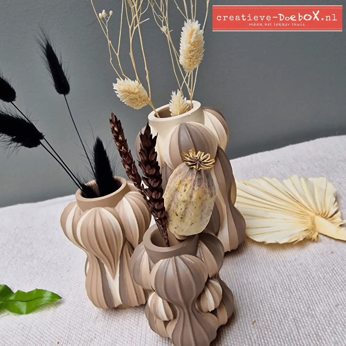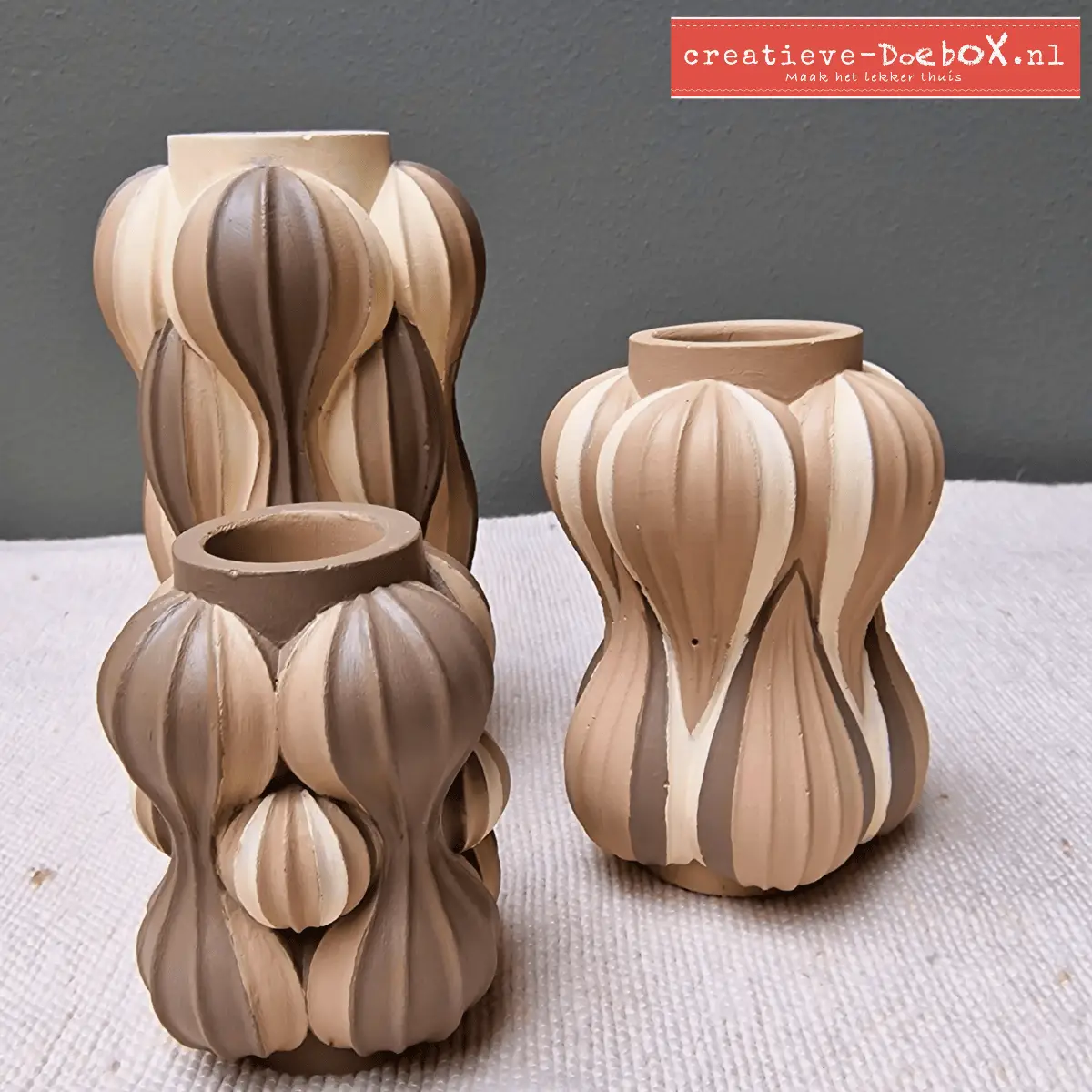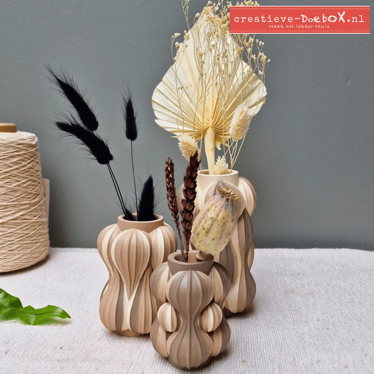 Deze set van drie ballon vaasjes. Naast losse vaasjes stel ik ook steeds complete sets samen, niet iedereen vindt het gemakkelijk om zelf iets samen te stellen of een ontwerp erop te bedenken. Mijn designteam is altijd bezit met leuke ontwerpen te maken en zo zijn we allemaal blij. Deze set is een ontwerp in rustige kleurtjes. Ik vind het een toppertje zo bij elkaar.