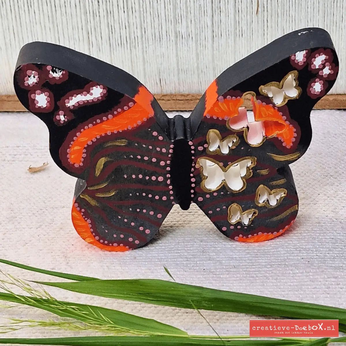Ik heb al twee voorbeelden gemaakt om je te inspireren, maar ik ben vooral benieuwd naar jouw creaties! Ga je voor kleurrijk en vrolijk of juist voor zachte, pastelkleurige tinten? De keuze is helemaal aan jou. Als je klaar bent, stuur me vooral een foto van jouw beschilderde vlinders; ik plaats ze graag op de productpagina als inspiratie voor anderen.