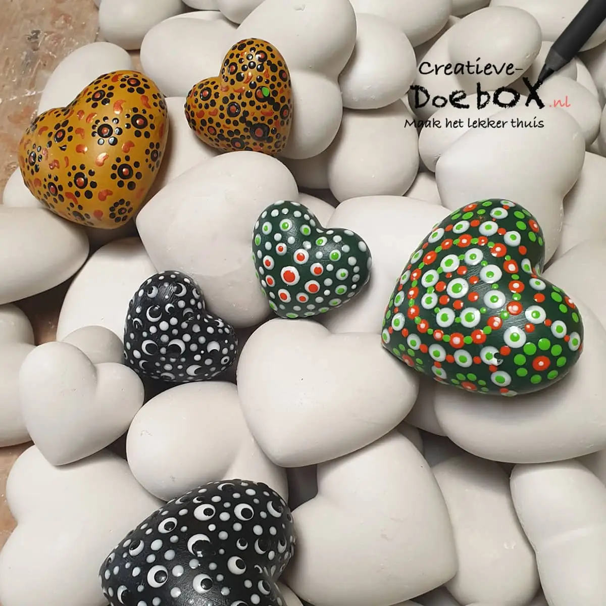 Deze hartjes zijn gemaakt van keramisch gips en heel leuk om te beschilderen of om de stiptechniek op te doen. In deze doebox zitten 6 hartjes. Met de handige instructiefilm die ik je toestuur na het bestellen wordt het genieten. Ook leuk om met de kinderen te doen.