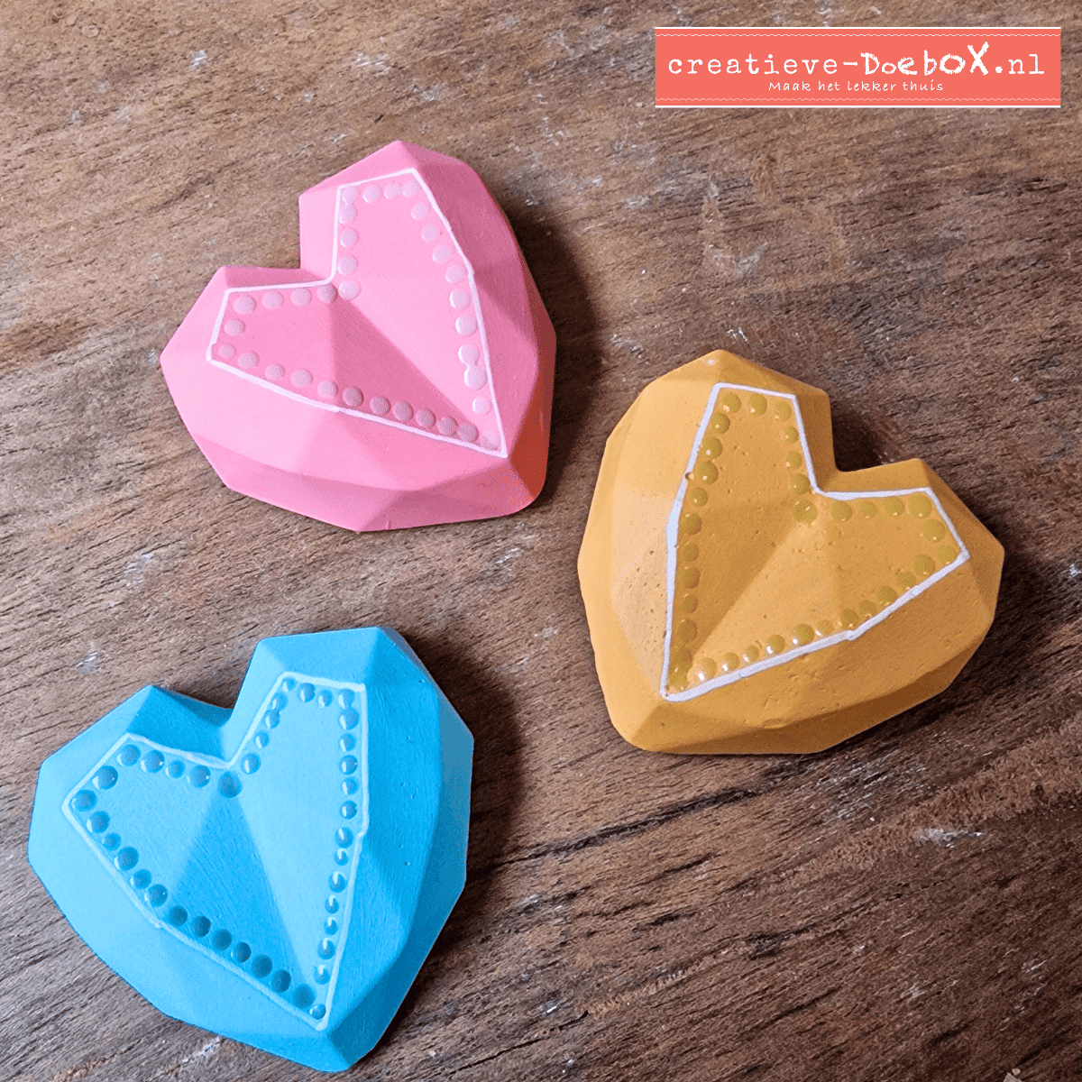 Deze geometrische hartjes combineren liefde met moderne kunst. Beschilder ze en ze zijn een creatieve manier om affectie te tonen, perfect om een geliefde te verrassen of jezelf.