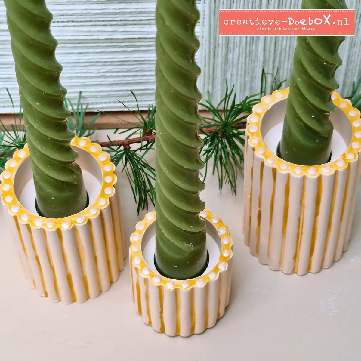 Deze kandelaars zijn gemaakt van hoogwaardig keramisch gips en zijn perfect om te beschilderen. Ik maak alle producten zelf, met heel veel plezier. Laat je creativiteit de vrije loop! Bestel de verf en andere benodigdheden los onder de menuknop “Verf en Zo” . Hier vind je alles wat je nodig hebt om je kandelaars te decoreren, van verf tot penselen en acrylstiften.