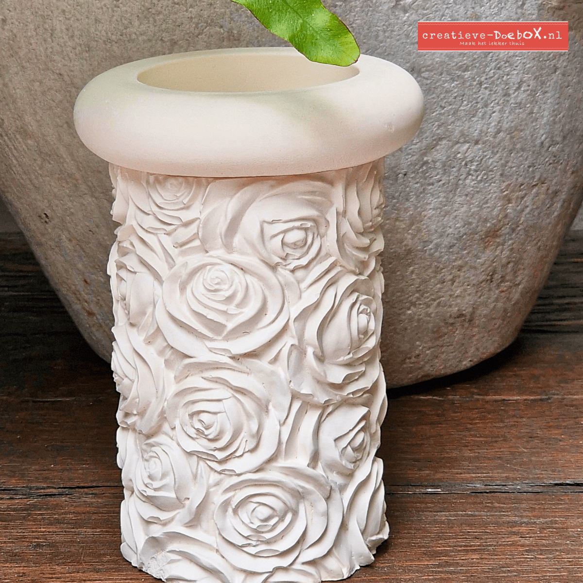 Deze prachtige cilinder is rondom versierd met sierlijke roosjes en afgewerkt met een strak rond schaaltje bovenop โ perfect om een kaarsje in te branden. Mijn voorbeeldje heb ik geschilderd in zachte roze tinten, maar jouw creatie kan natuurlijk helemaal jouw eigen stijl krijgen. Misschien ga jij wel voor klassiek rood of modern wit?