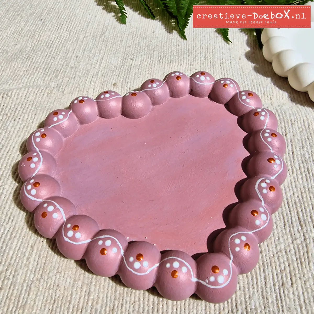 Schalen kun je nooit genoeg in huis hebben! Ontdek mijn collectie schalen in diverse maten en vormen. Van groot en robuust tot lief en klein, en verkrijgbaar in strakke, hartvormige, ronde, langwerpige en gegolfde ontwerpen. Ik heb zoveel mallen inmiddels dat ik de modellen namen ben gaan geven, handiger voor het inpakken. De teller van het aantal verschillende modellen staat inmiddels op ruim 250 🙈. Dit hartjes schaaltje heeft de naam model Limburg gekregen.